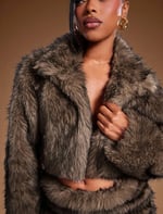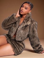 SKYNLYDRESS - Ensemble sexy courte à col et jupe en fausse fourrure pour femmes