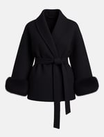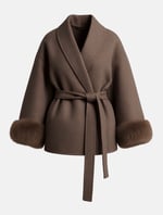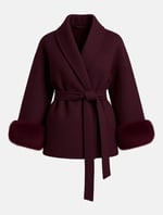 SKYNLYDRESS - Manteau court thermique en peluche à manches longues et nœud à la taille