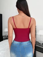 SKYNLYDRESS - Top débardeur court ajusté sexy à bretelles fines, côtelé